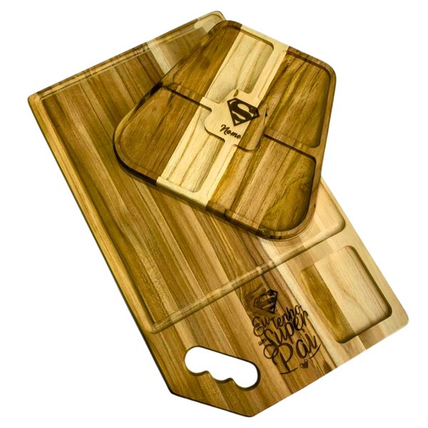 Um presente especial para celebrar o Dia dos Pais: Kit Tábua + Petisqueira em Madeira Teca PERSONALIZADOS! 🎁✨