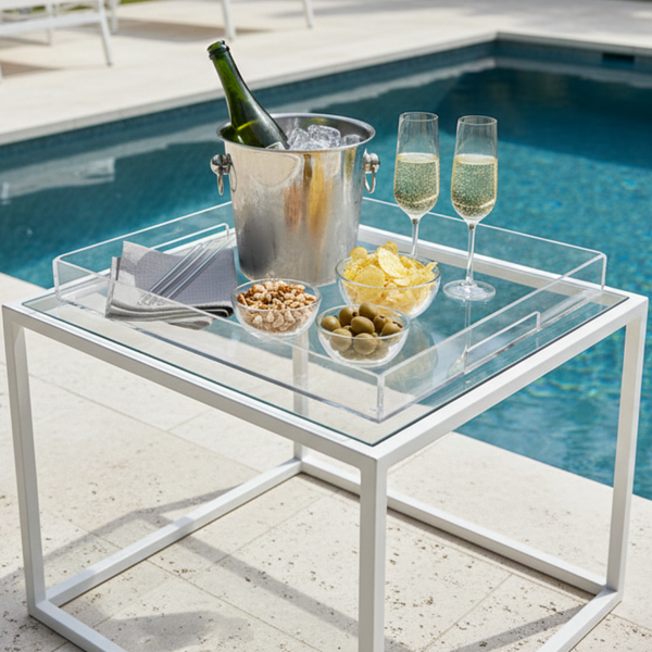 A bandeja conta com alças nas laterais e é totalmente dobrada, eliminando assim qualquer ponto de cola ou emendas.