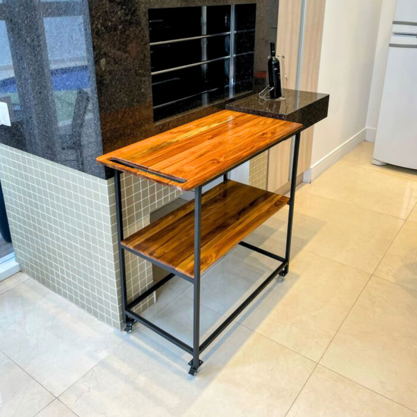 Fabricado em aço metalon preto fosco de 2x2cm, este modelo une estrutura reforçada com um design moderno e elegante. Diferente de opções mais simples no mercado, este carrinho foi pensado para durar e impressionar.